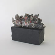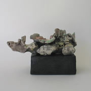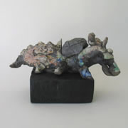 Unten abgebildete Tiere (Keramik, Rakubrand, ca. 10 x 10 cm inkl. Sockel)